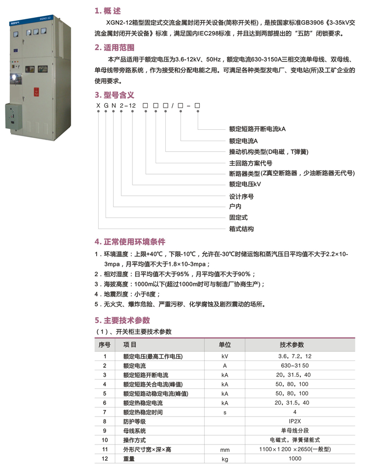 XGN2-12箱型固定式交流金属封闭开关设备