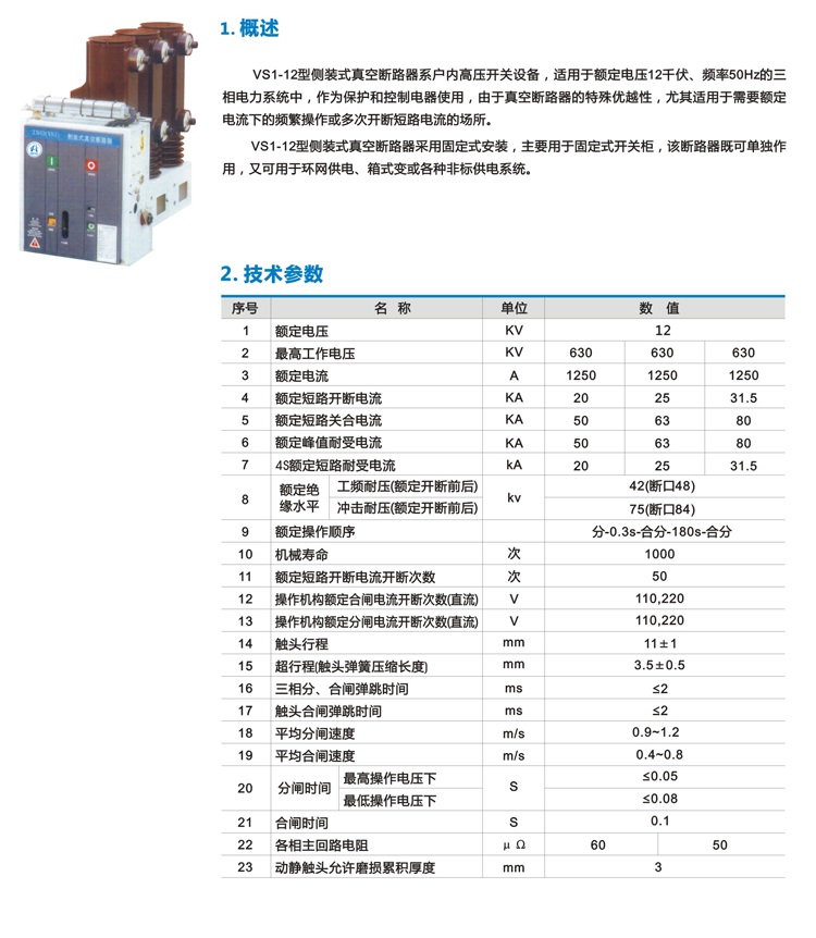 VS1系列 侧装式户内高压真空断路器