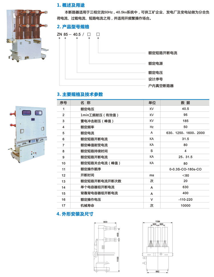 ZN85-40.5C、2000-31.5型户内高压真空断路器
