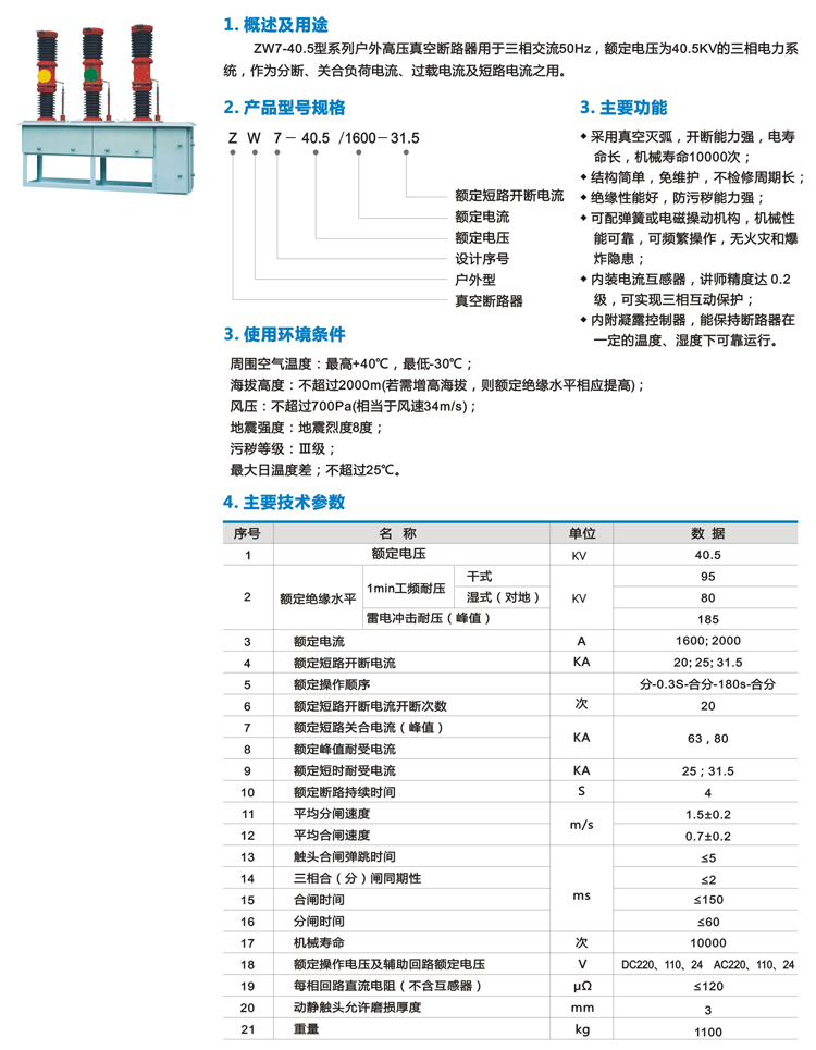 ZW7-40.5型户外高压真空断路器